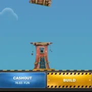 Ein Block schwingt an einem Kran über dem Turm. Du entscheidest, wann er fällt. Landet er ausgerichtet, wächst der Turm und der Multiplikator steigt. Landet er daneben, stürzt alles ein.
